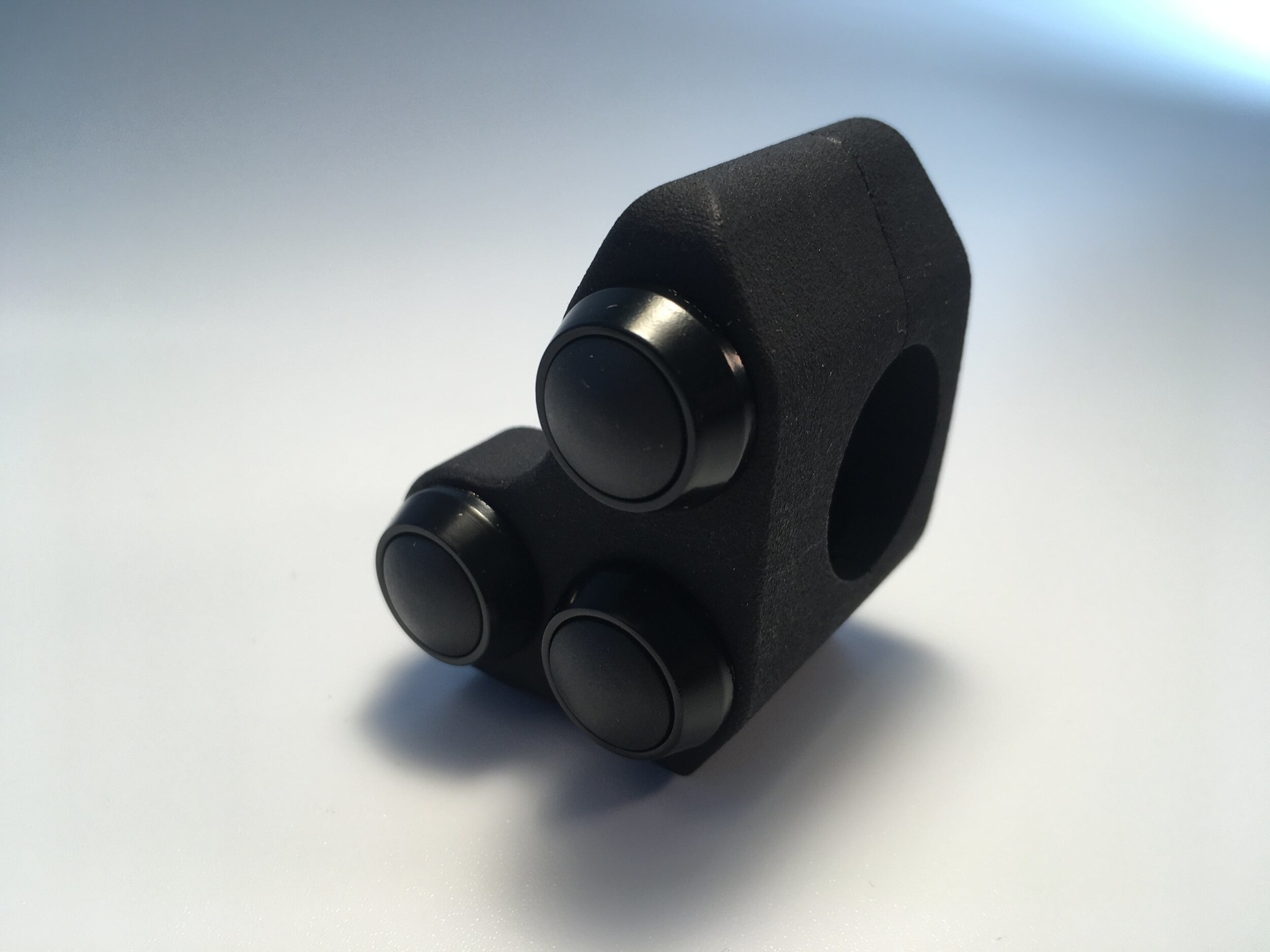 Beaux interrupteurs de guidon imprimés en 3D pour guidons de 22 mm de TV3D. Disponible en combinaisons de 1, 2, 3 et même 4 boutons. Fonctionne très bien avec Mo-Unit de Motogadget!