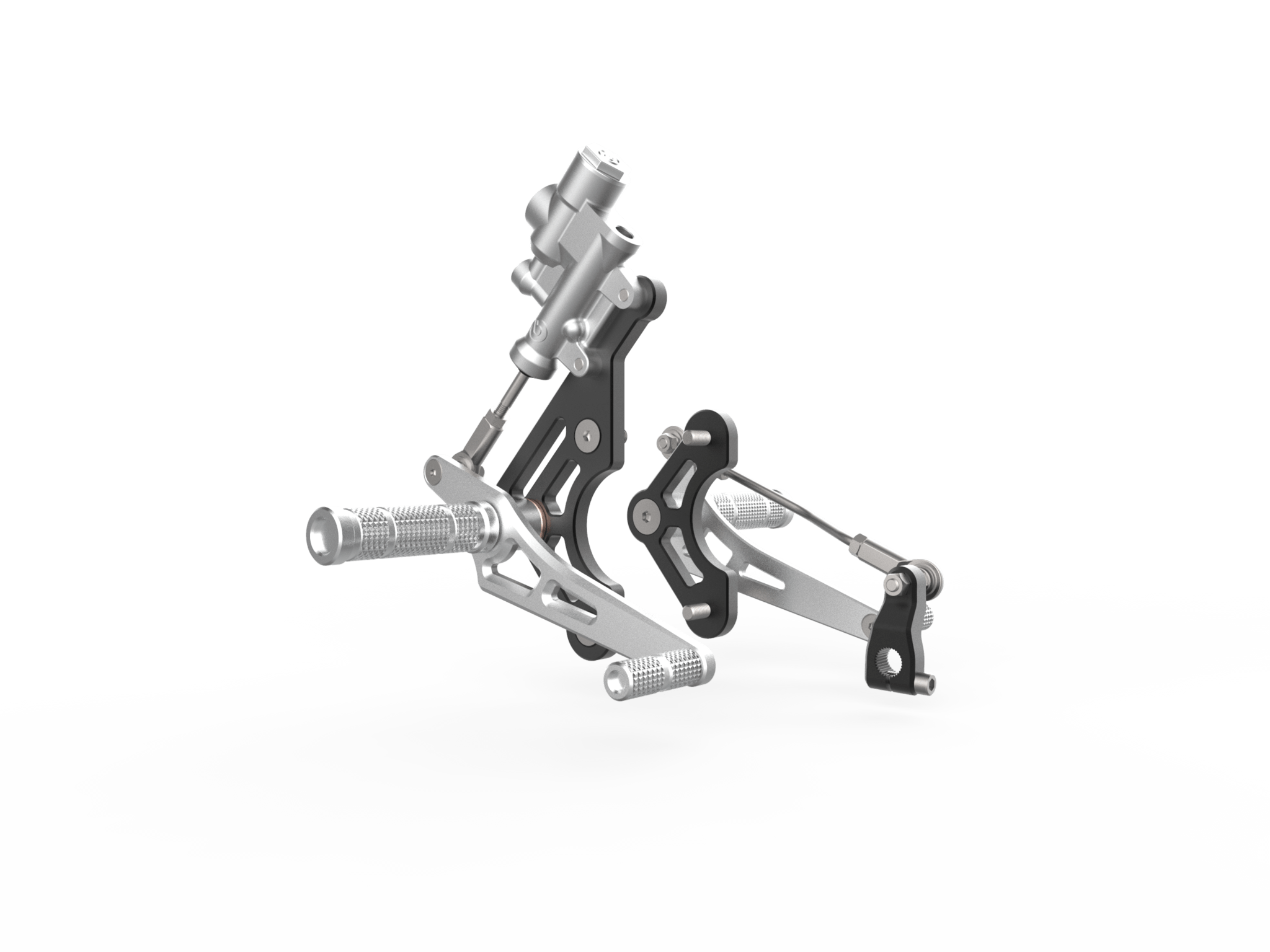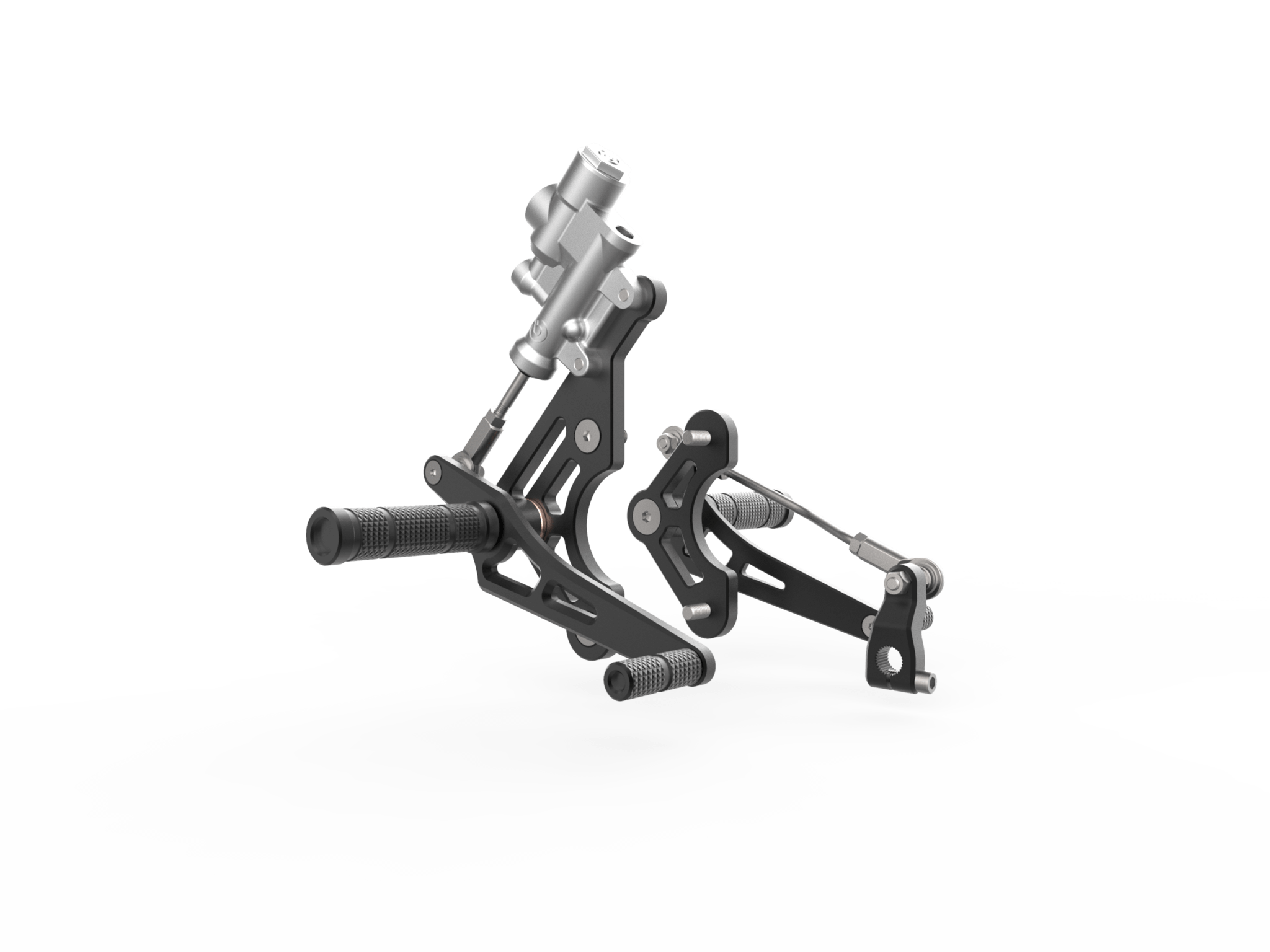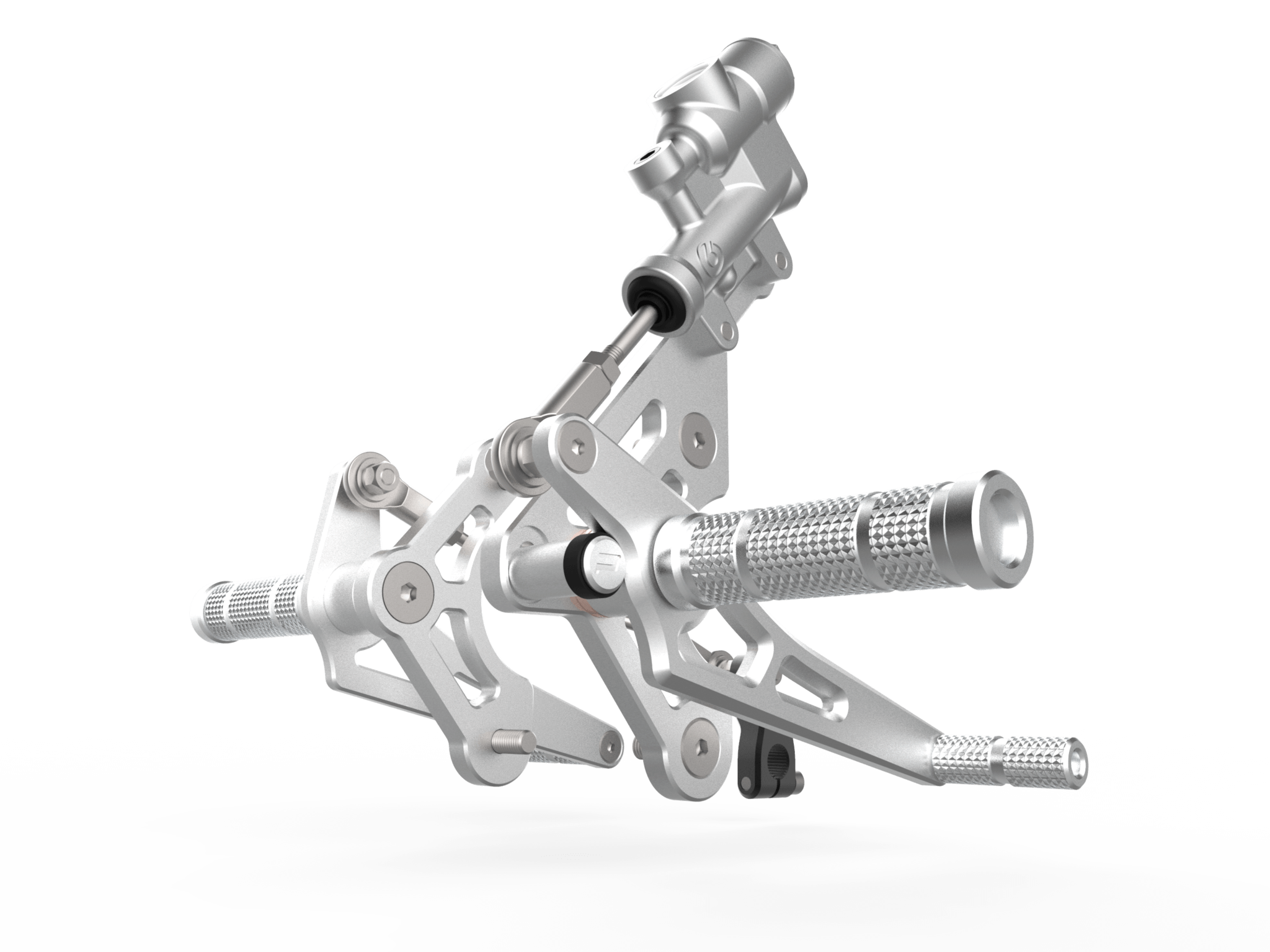 Kit arrière complet pour les BMW K75, K100 et K1100. Ce kit remplace les commandes reculées d'origine BMW et intègre le compartiment du liquide de frein dans un design compact. Le jeu de commandes arrière vous sera expédié sous forme de kit `` à construire vous-même '' avec un manuel de montage facile à suivre. Le kit contient les pièces suivantes: