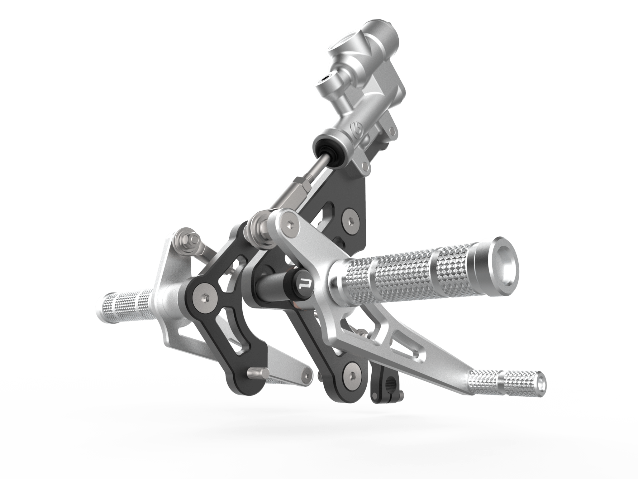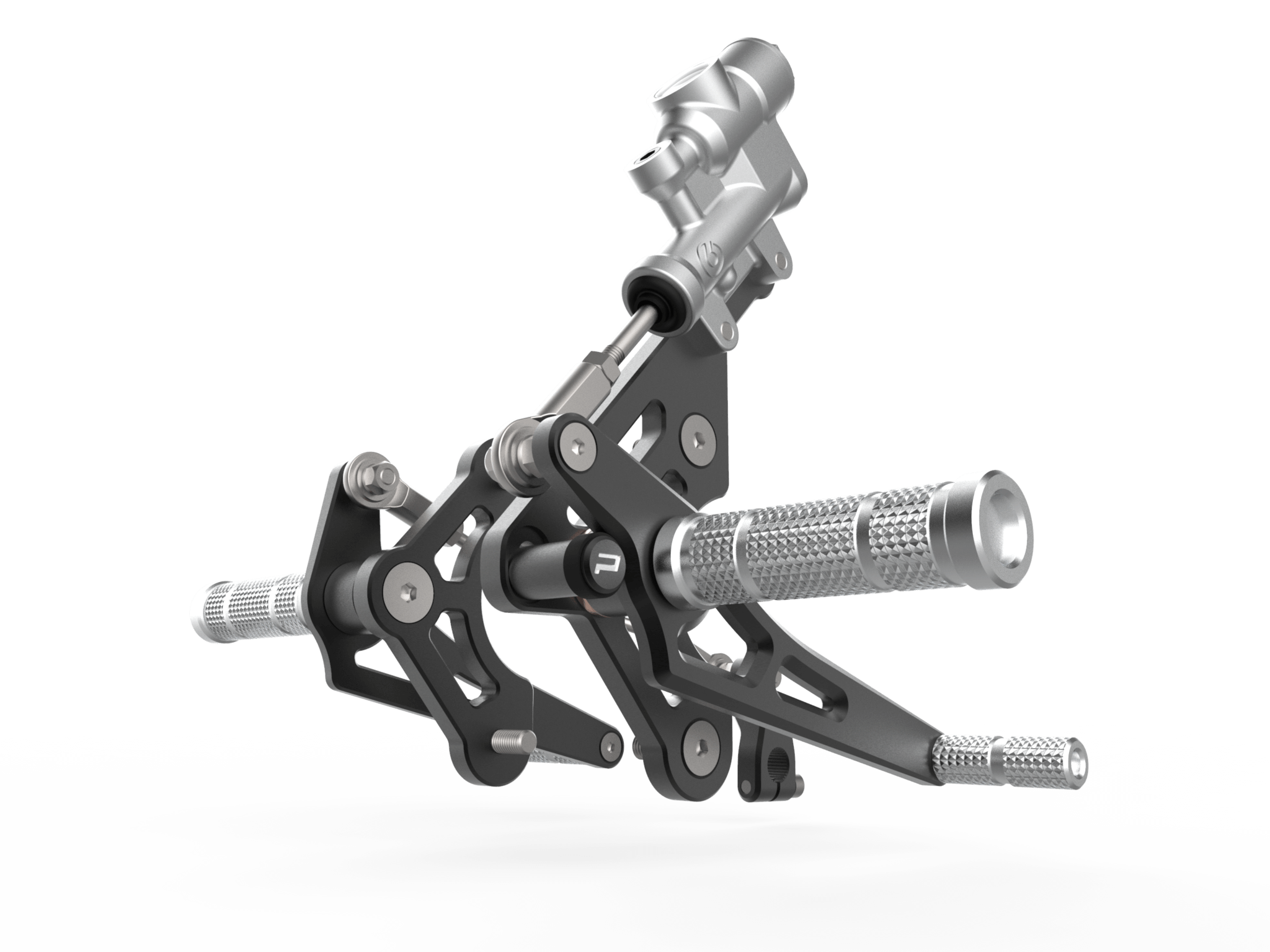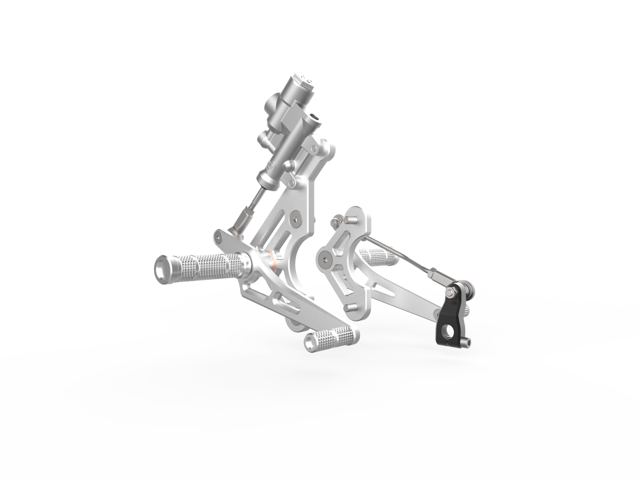 Kit arrière complet pour les BMW K75, K100 et K1100. Ce kit remplace les commandes reculées d'origine BMW et intègre le compartiment du liquide de frein dans un design compact. Le jeu de commandes arrière vous sera expédié sous forme de kit `` à construire vous-même '' avec un manuel de montage facile à suivre. Le kit contient les pièces suivantes: