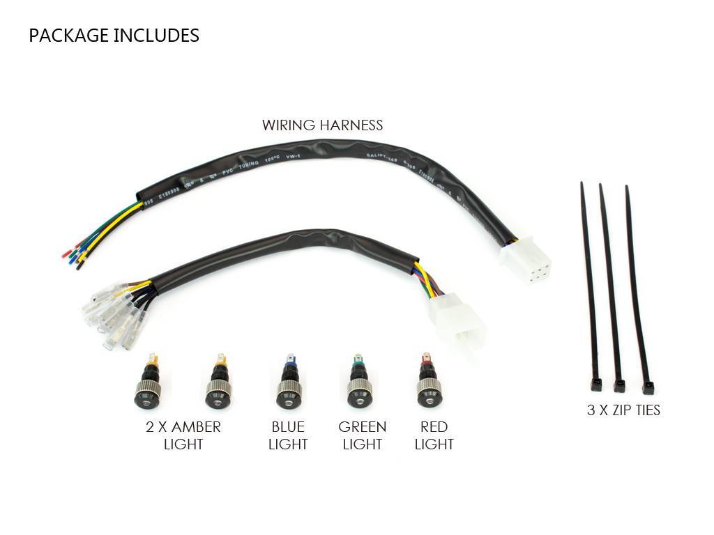 - Comprends : 5 témoins lumineux, un faisceau électrique et 3 colsons.