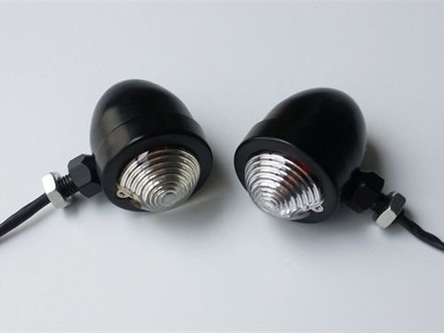 Paire de clignotants Bullet old school noirs & transparents. Boîtier noir.