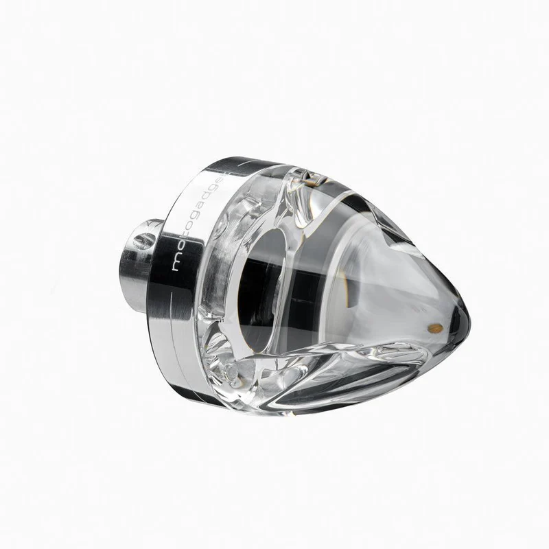 Traditionnellement, le boîtier est usiné en aluminium massif, anodisé noir ou poli brillant, et orné d'une élégante finition gravée au laser. Avec son corps en verre transparent, le cône du mo.blaze présente un look neutre et subtil. C'est pourquoi il s'adapte parfaitement à de nombreux styles et à tous les types de motos.