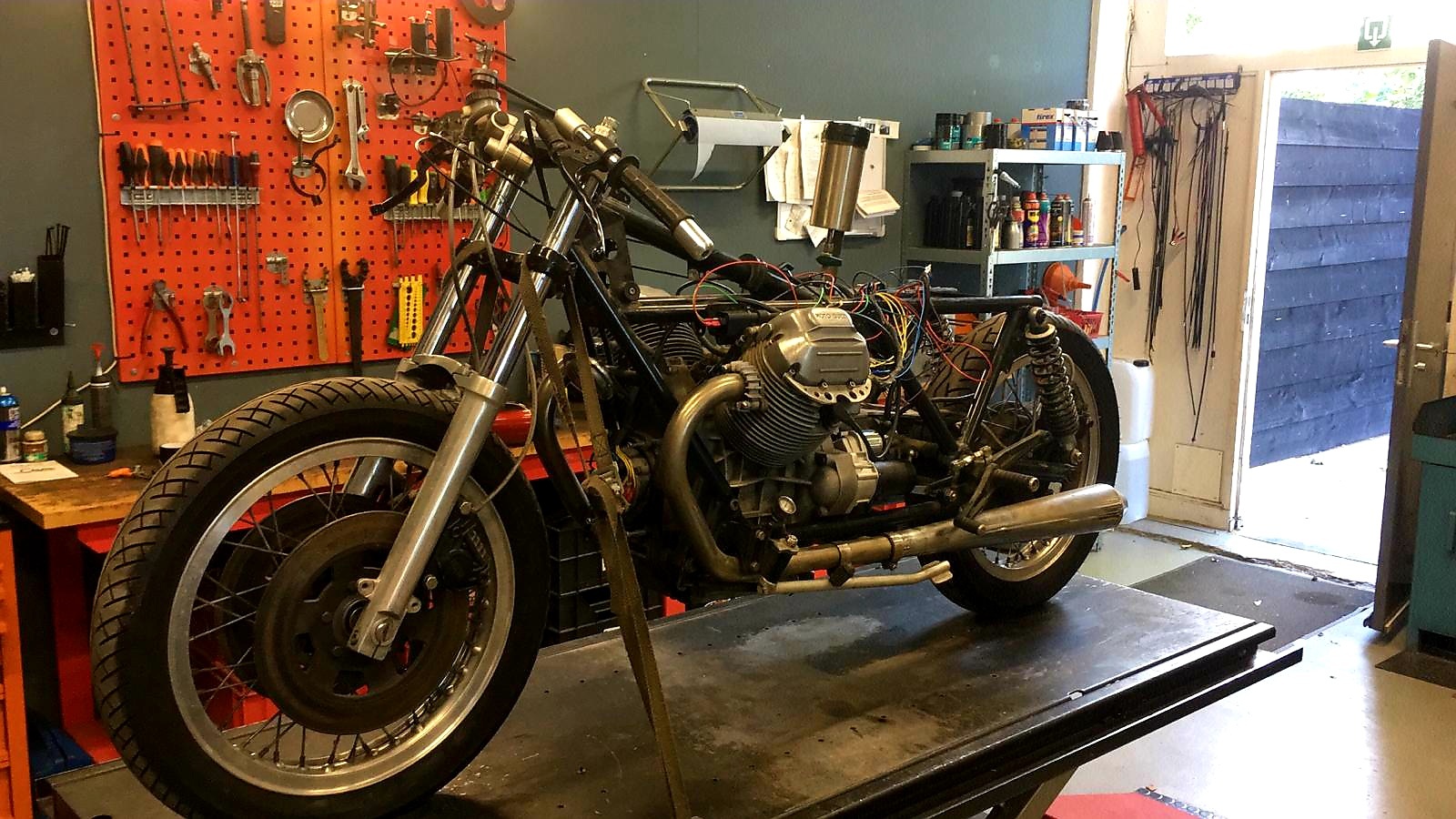 Moto Guzzi 1000 SP convertie professionnellement (Ace 13 Oudelande) en café racer.