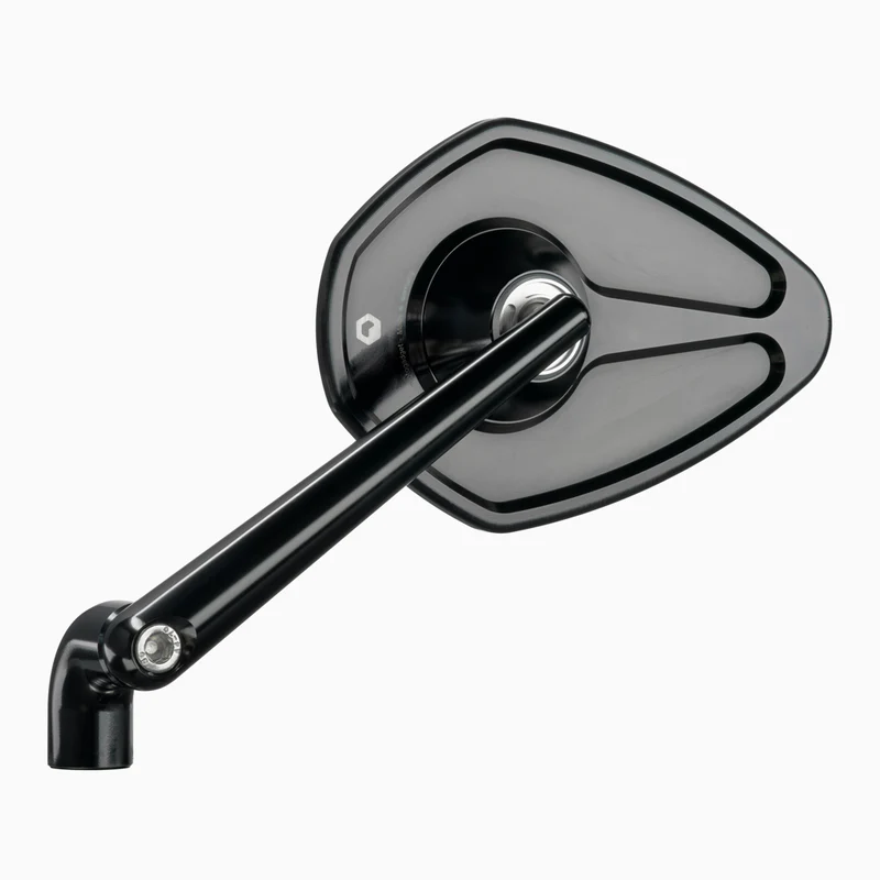 Le corps du rétroviseur, le bras et le support de guidon sont usinés sur des machines CNC en aluminium massif et anodisés haute qualité. Toutes les vis sont en acier inoxydable. La rotule précise permet un réglage confortable et très stable du rétroviseur.