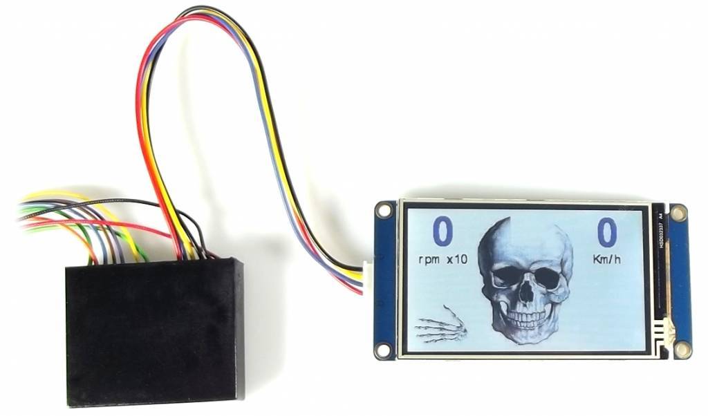 Cet indicateur de vitesse avec écran tactile est notre nouveau bijou. Vous pouvez le configurer avec vos propres photos et designs afin de rentre votre moto plus unique que jamais. L'unité de commande avec les connexions des câbles aux capteurs est séparée de l'écran LCD, ce qui permet d'avoir un aspect plus propre vu qu'il y a moins de câbles apparents. L'éditeur est un logiciel facile à manipuler et que vous pouvez télécharger sur le Web. Vous pouvez choisir entre 3 écrans LCD différents avec des dimensions comprises entre 2,4", +/- 2,8" et +/- 3,2".