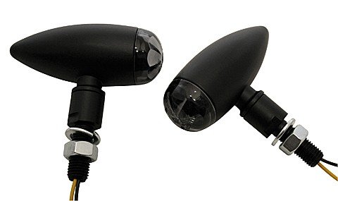 Paire de mini clignotants Bullet avec boîtier noir et lentille fumée. Ce produit est fabriqué à partir d'aluminium d'excellente qualité. Ils sont assez robustes et possèdent une homologation ECE, il s'agit donc d'un produit fiable !