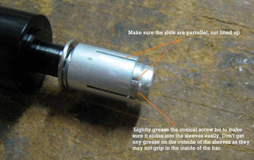 - Graissez légèrement la partie conique de la vis pour qu'elle s'insère facilement dans le manchon.