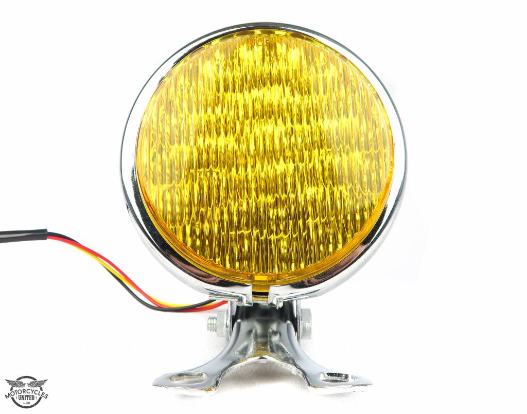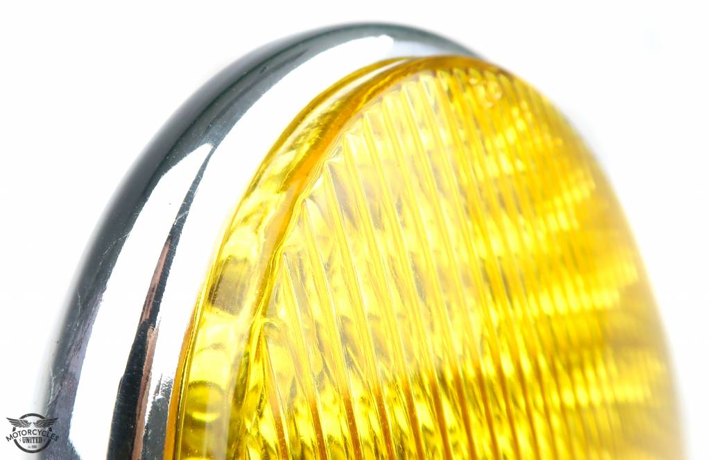 Phare Oldskool Cafe Racer de 5" (12,7 cm) chrome et jaune, avec fixation inférieure. Phare tendance, qui risque d'attirer l'attention !