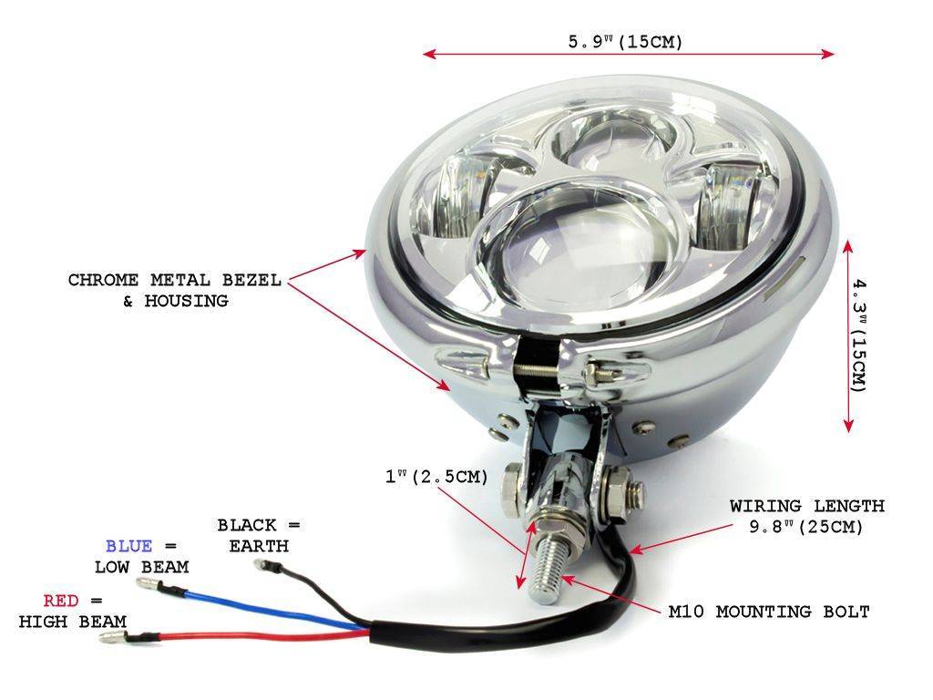 Phare avant 5,75" chromé à LED CREE style "Bates" - montage inférieur.