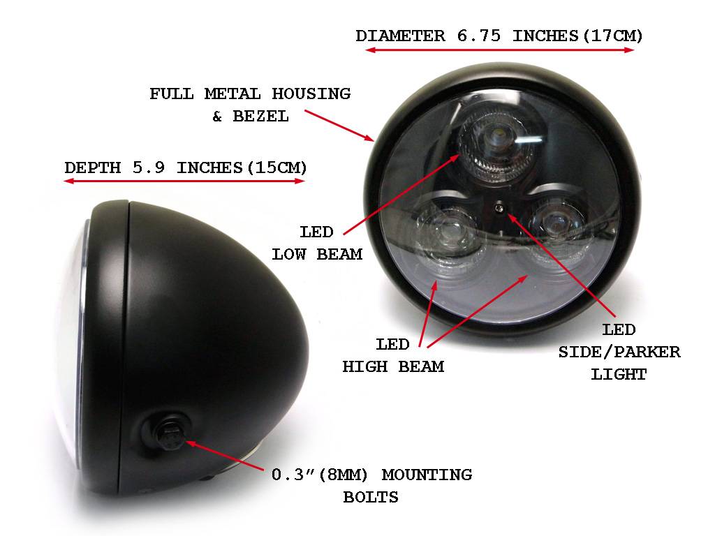 Ce phare avant à LED universel combine le boîtier typique des années 1970 avec des composants LED modernes. Le faisceau lumineux est particulier, car il est similaire au faisceau d'une lampe halogène standard alors qu'il s'agit d'une LED, ce qui le rend plus brillant et visible sans pour autant aveugler les autres conducteurs.
