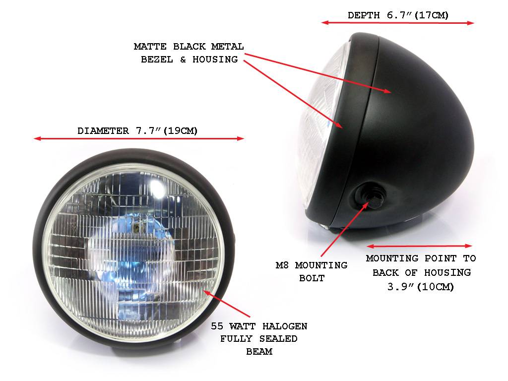 Phare avant en mtéal noir mat Café Racer 7,5"