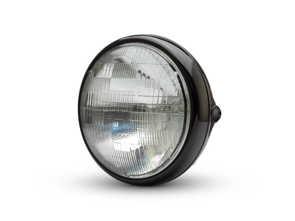 Phare universel "Shorty" en métal noir brillant 7" - lampe scellée 12v / 55w