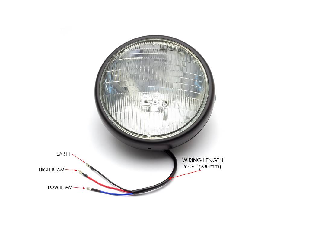 Phare universel "Shorty" en métal noir mat 7" - lampe scellée 12v / 55w