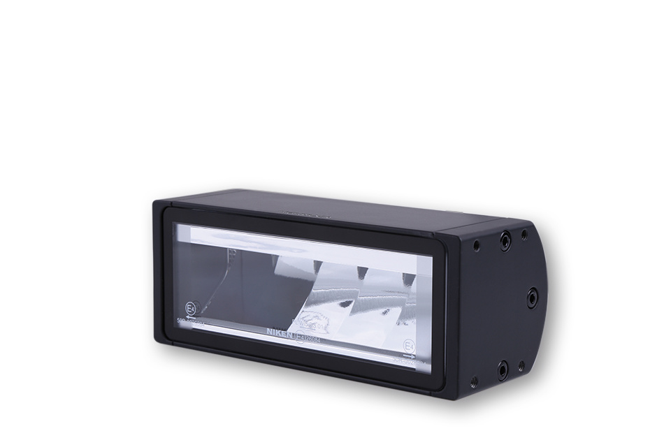 Le feu de croisement à LED avec feu de position a un boîtier en aluminium avec des ailettes de refroidissement à l'arrière. Pour le montage de la lampe frontale, il existe des possibilités de montage sur le côté et disponibles ci-dessous.