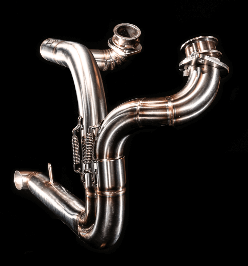 Les échappements sont en acier inoxydable. Les tubes ont un diamètre de 44,5mm et le silencieux s'adapte sur une bride de 50,8mm. L'échappement sera livré avec un silencieux intégré