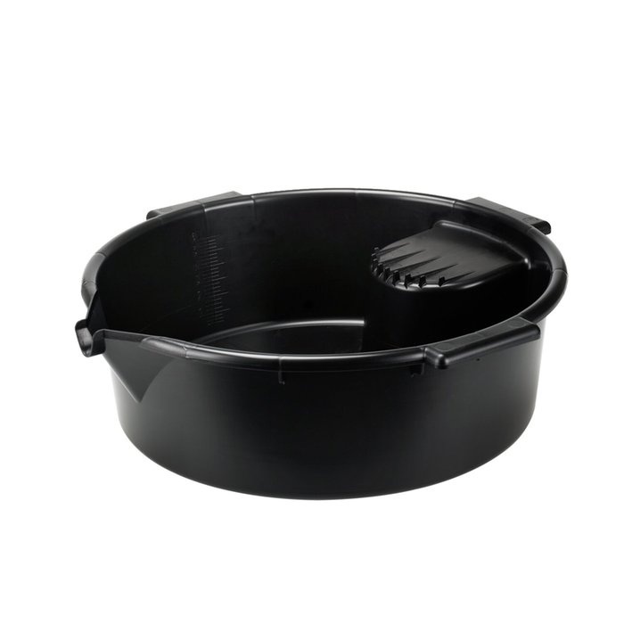 Bac de récupération d'huile durable et pratique, fabriqué en polyéthylène noir de haute qualité, également adapté au nettoyage de petites pièces. Ce bac est doté d'une double graduation facile à lire, graduée en litres (par incréments de 0,25 L) et en gallons (par incréments de 0,125 gal) .