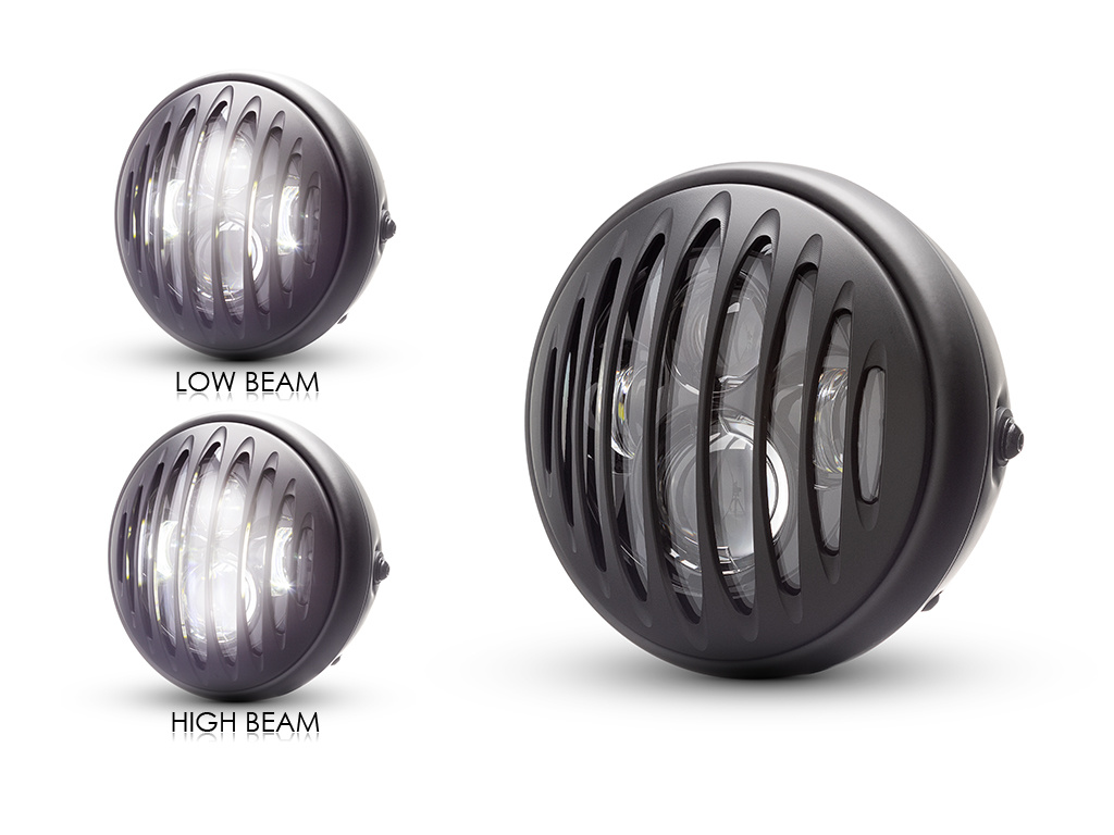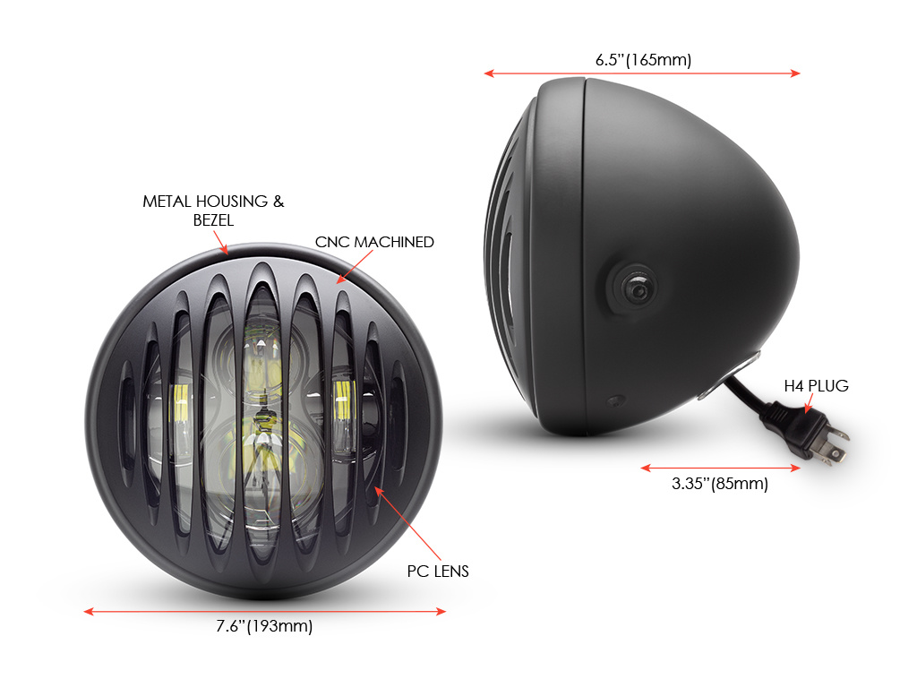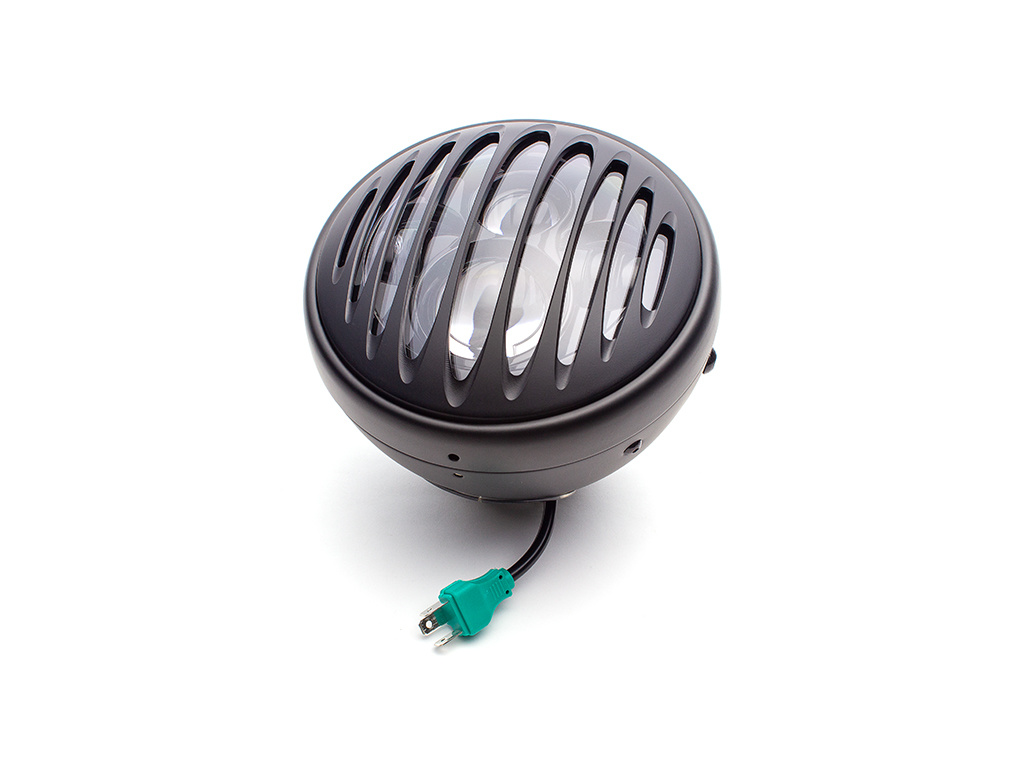 Il comprend des composants internes modernes avec des LED brillantes et une face avant au style rétro. Celle-ci se trouve dans un grand boîtier en métal classique. Ce produit est non seulement superbe, mais il est également plus lumineux qu'un phare standard de 55W.