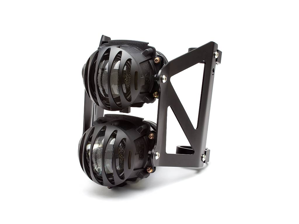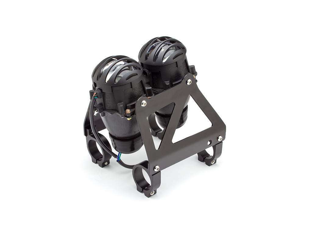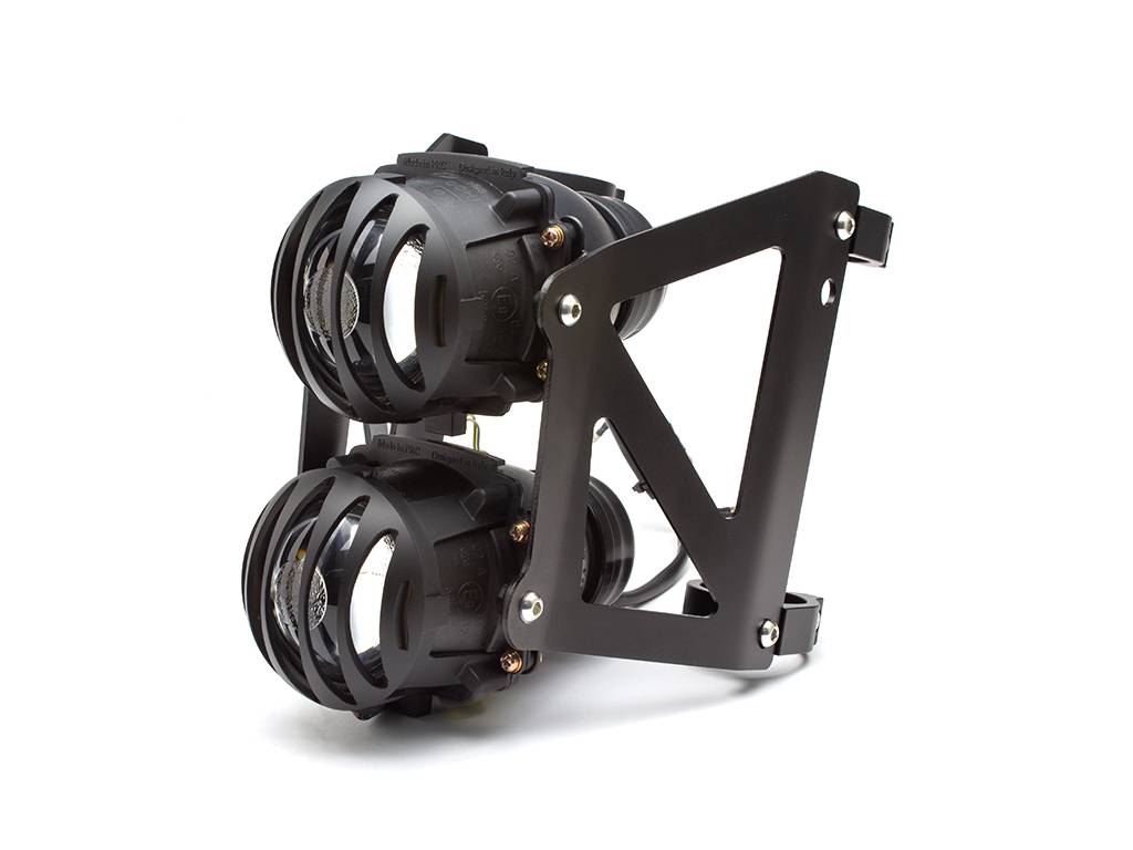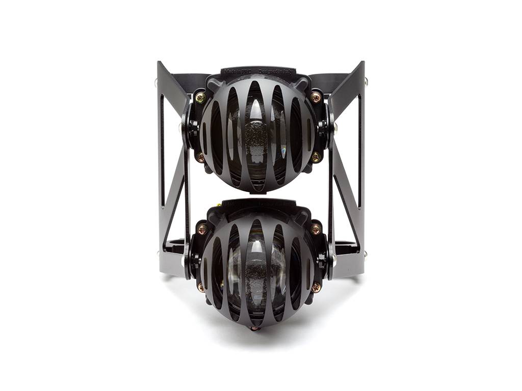 Double phare "Twin Prison Grill" 40-41 mm. Il s’agit d’un superbe ensemble de phares, qui comporte deux phares projecteurs. Le tout est facile à monter sur la plupart des motos.