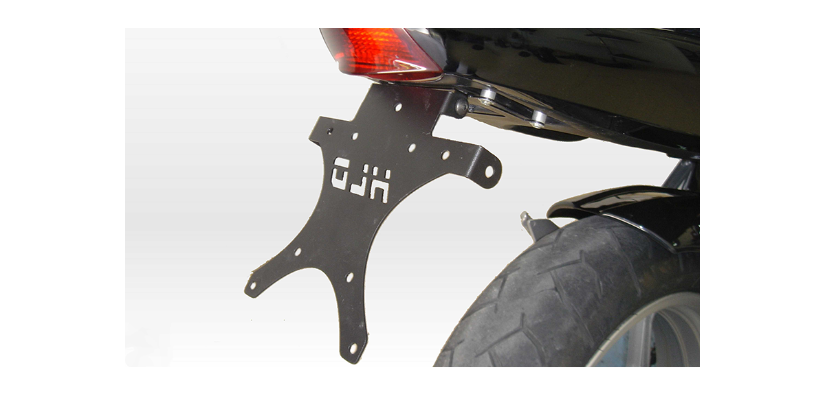 Le support de plaque d'immatriculation est fabriqué en tôle DCP de 2 mm et spécialement conçu pour la Kawasaki ER6 N / F.