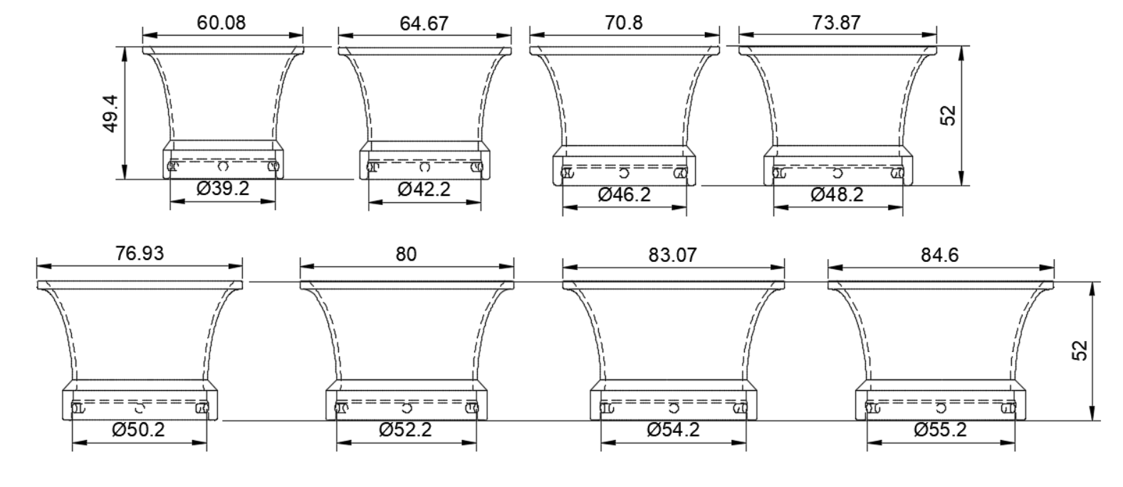 Les calices sont disponibles en 8 tailles différentes :