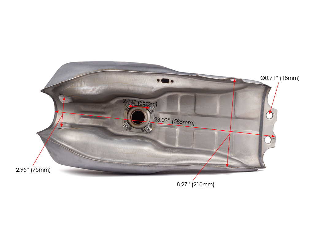Remarque: ceci est un réservoir d'ajustement rétro et nécessitera probablement quelques modifications pour s'adapter à votre moto. S'il vous plaît vérifier les mesures soigneusement avant d'acheter pour vous assurer qu'il s'adaptera à votre vélo.