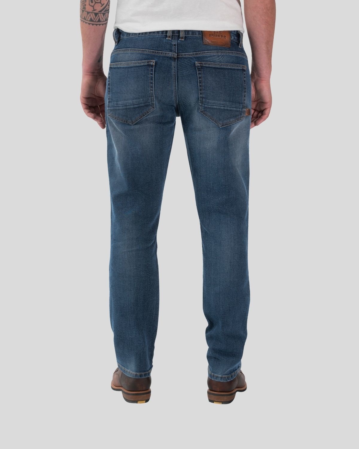 - L'étiquette en cuir Motorcycle ROKKER sur la taille et la poche arrière n'est pas rayée par les rivets.