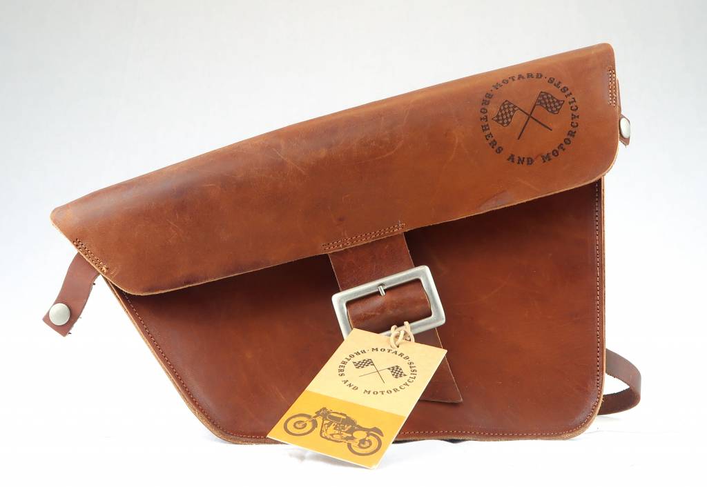 Sacoche cavalière pour Scrambler de très bonne qualité. Bien qu'elle soit fabriquée en cuir souple et épais, elle n'en est pas moins très robuste. L'espace de rangement n'est pas énorme, mais vous pouvez facilement y mettre des outils, des habits de pluie ou d'autres objets utiles.