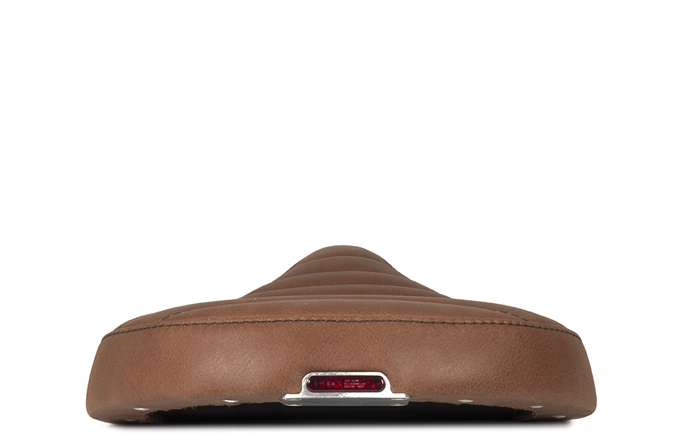 Pour autant que nous le sachions, c'est le seul siège "new school bobber" avec un feu arrière et un feu de stop LED intégrés (avec E-mark) et si ce n'est pas le seul, c'est certainement le plus beau. Le petit feu intégré donne à votre vélo un aspect très propre. La lumière mesure 40x8 mm et est insérée dans un support en alliage usiné CNC conçu sur mesure qui est boulonné au bas de la selle. Tout le câblage est interne et peut facilement être connecté hors de vue à votre faisceau de câbles.