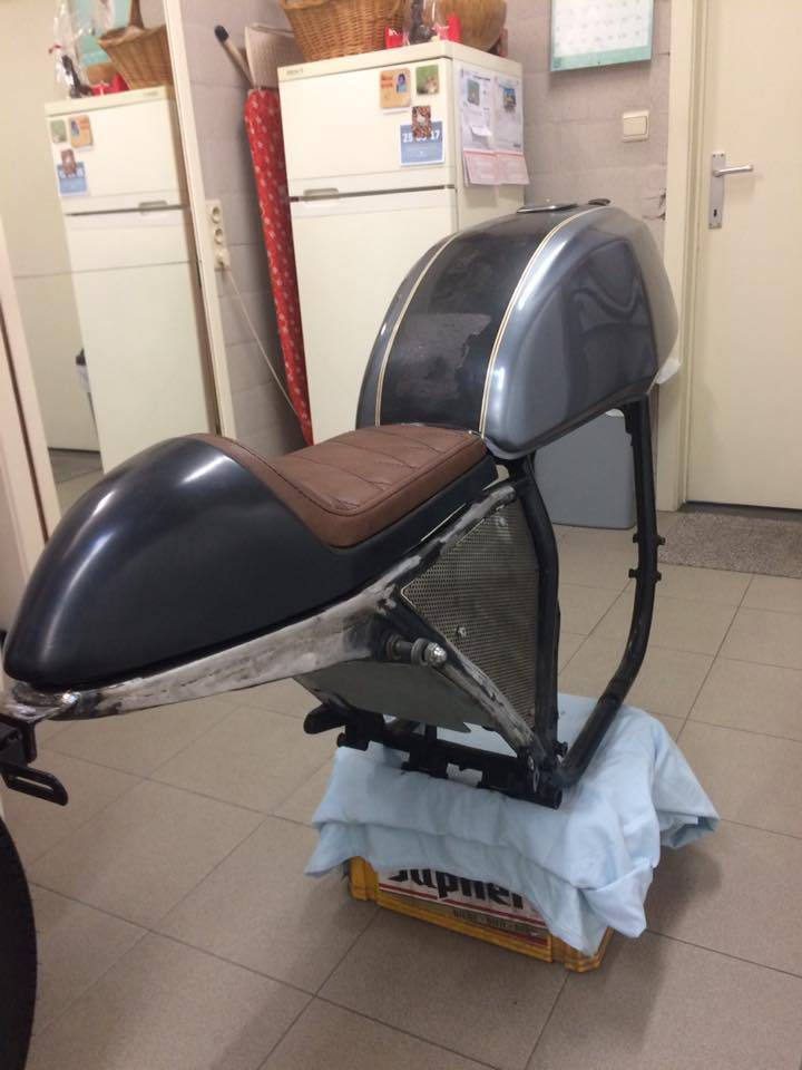 Selle Café Racer Tuck N' Roll coutures marron chocolat type 109. La base de cette selle est en plastique ABS d'excellente qualité. Le coussin peut être enlevé facilement du socle en plastique, ce qui rend le montage super facile !