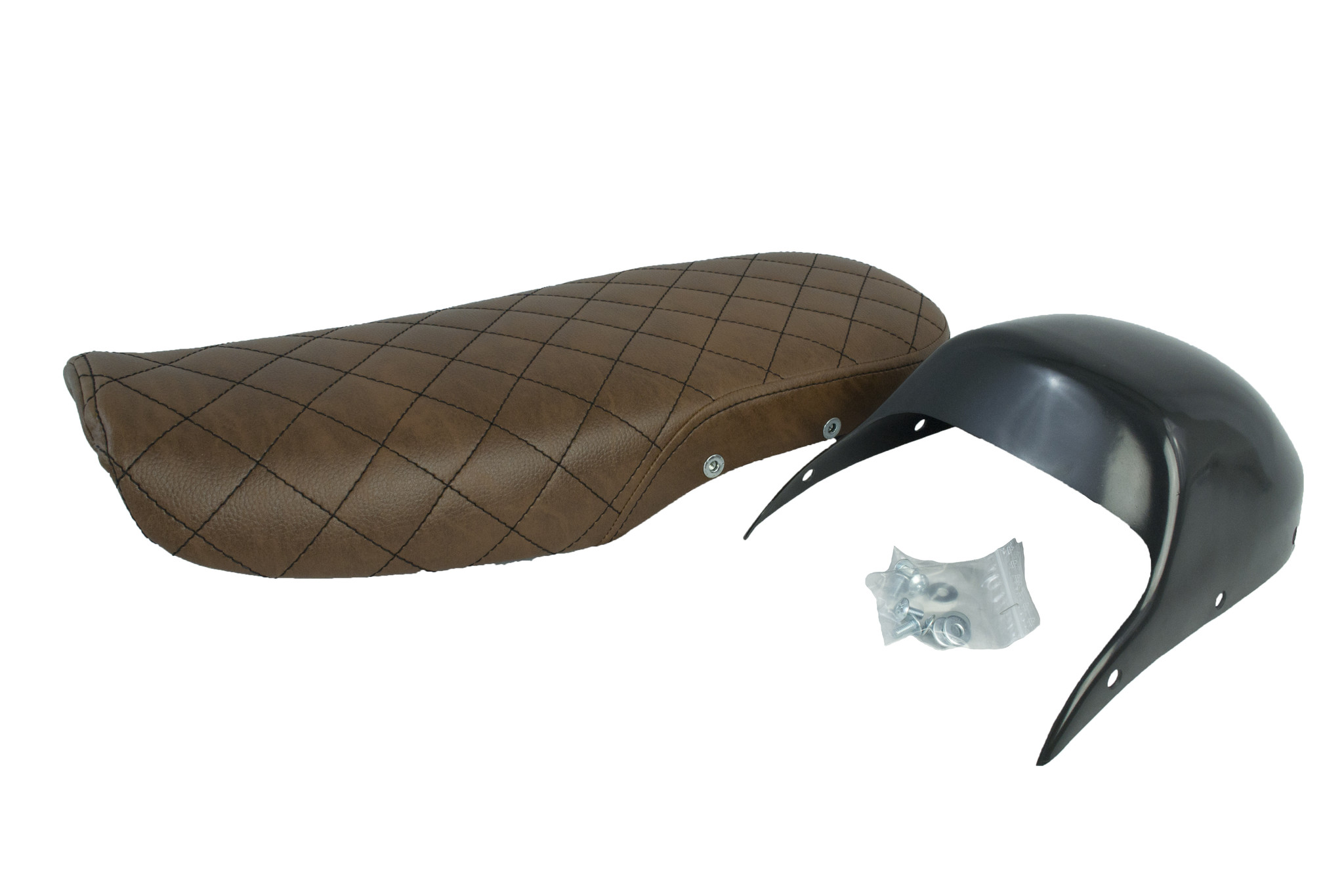 Selle CX500 Diamond Vintage Brown 80. Cette selle s'attache directement sur votre CX500. Vous pouvez raccourcir un peu votre sous-cadre, mais la courbure de votre sous-cadre ne pose pas de problème !