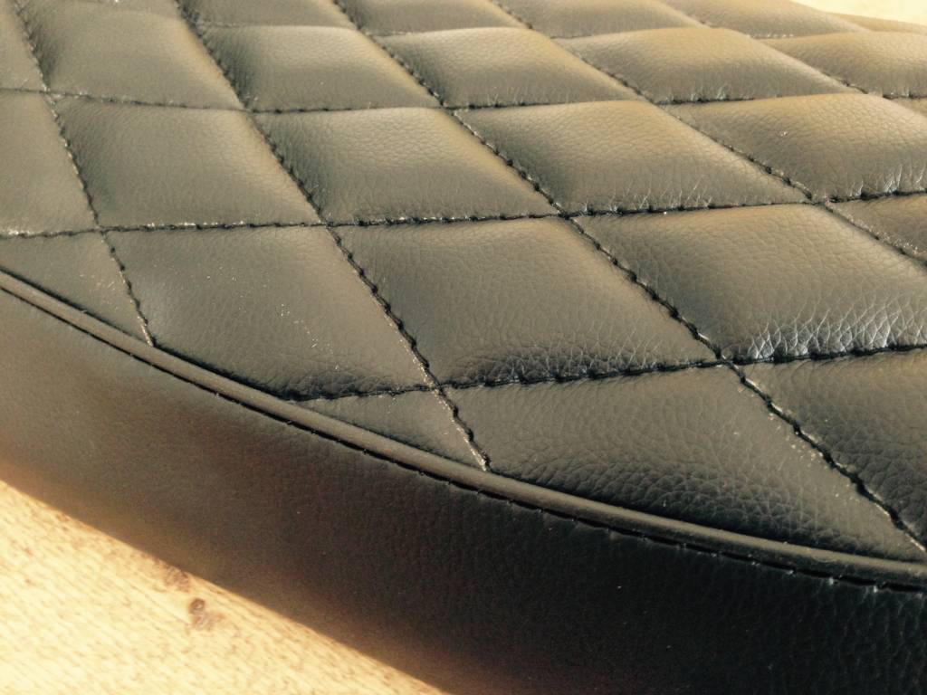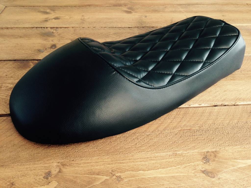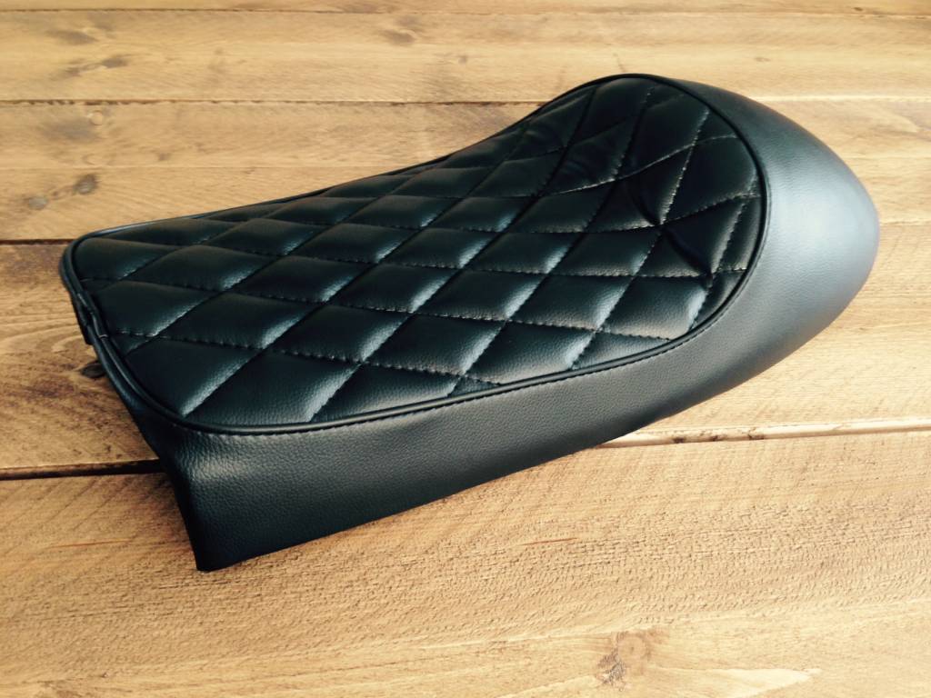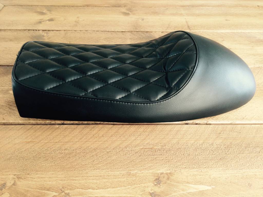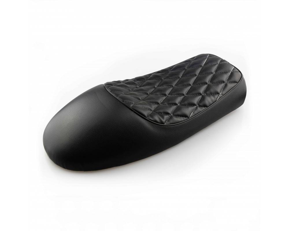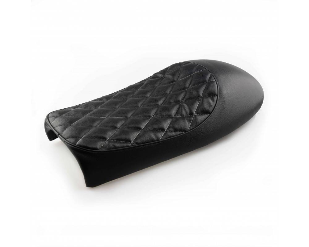 Selle noire Café Racer Diamond Stitch 25. Ces selles sont tout simplement géniales ! Elles sont fournies avec 6 boulons et un kit de montage.