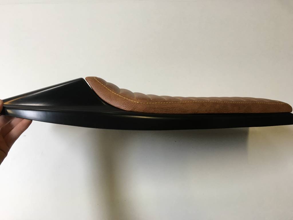 Selle vintage marron/jaune Street Tracker 130. Selle pour Flat Track à la fois classe et super cool. La couture sur celle-ci fait vraiment la différence !
