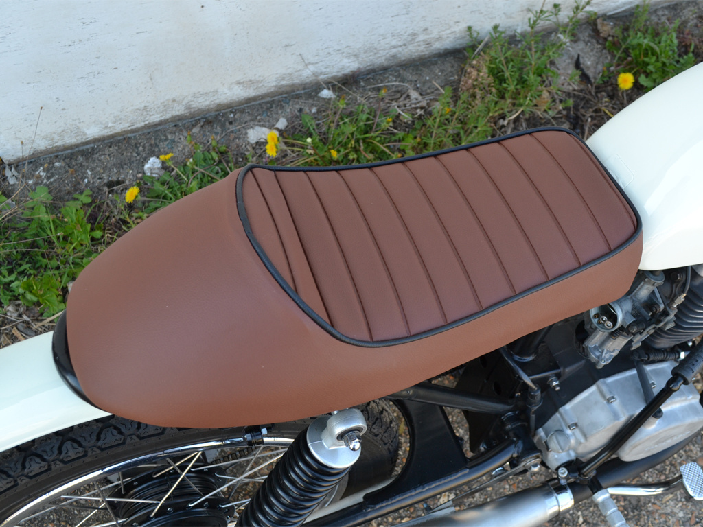 Les sièges sont en cuir PU (Skai) car ce matériau a une meilleure résistance à la pluie et au soleil. Comme vous l'avez peut-être remarqué, cela rend également le siège plus abordable. La qualité est magnifique et constitue un véritable atout pour chaque Cafe Racer!