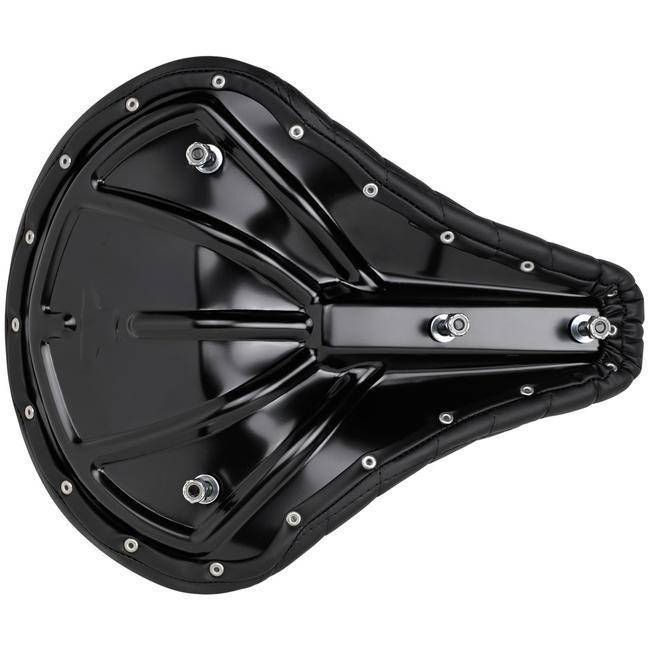 La plaque de base de la selle est fabriquée en métaux lourds et possède une belle finition noire mate.