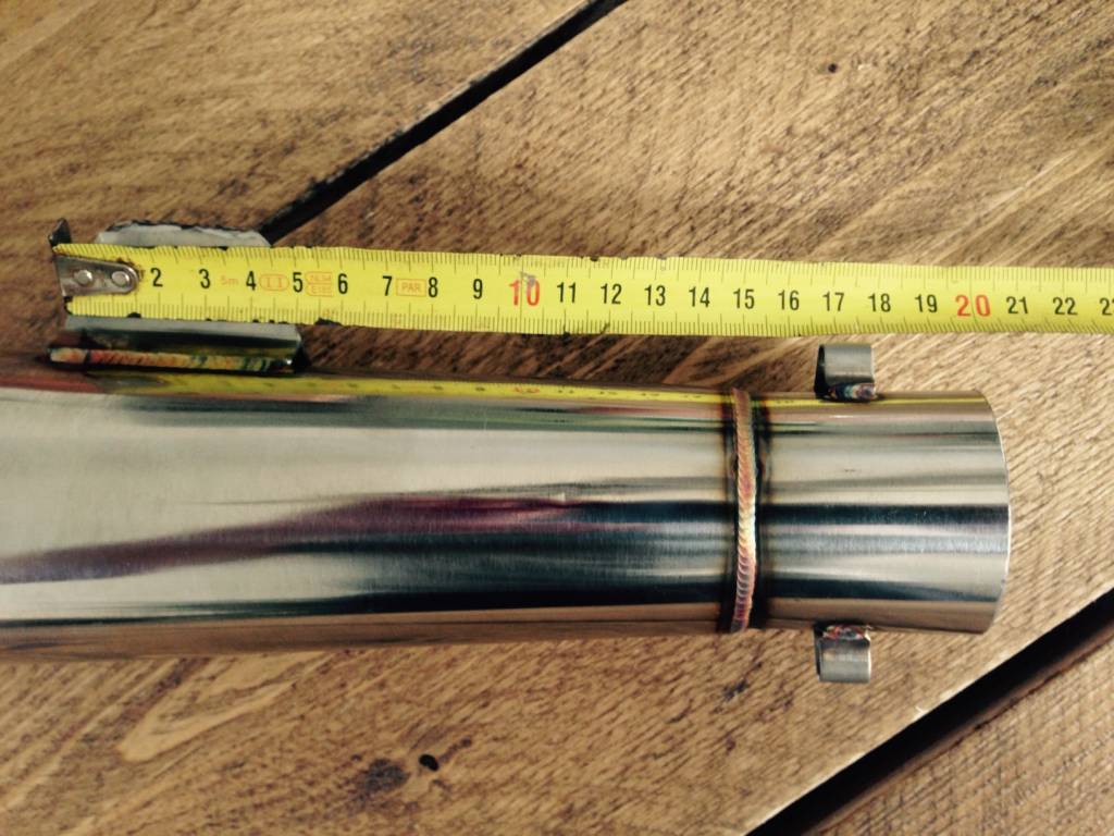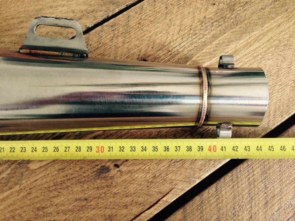 Silencieux Classic GP fait main, plus un tueur de décibels. Ce magnifique silencieux est fabriqué en acier inoxydable et est livré directement avec un tueur de décibels. Le silencieux peut être placé sur 2 côtés. Le diamètre de la connexion est de 51mm.