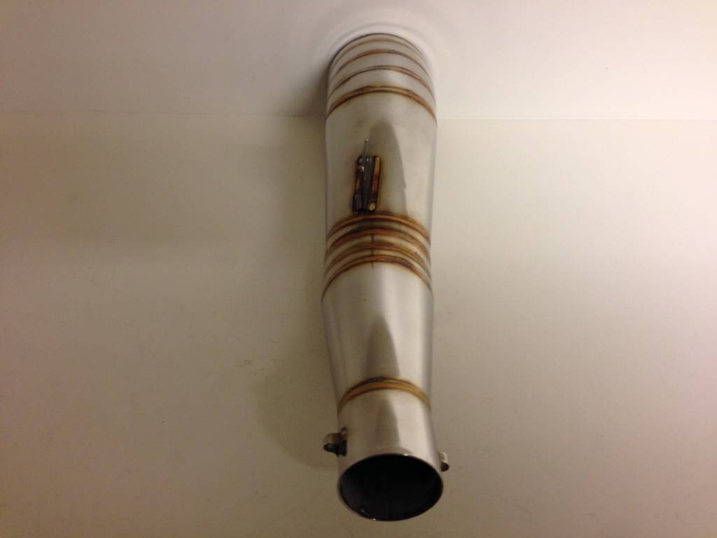 Silencieux Classic GP fait main, plus un tueur de décibels. Ce magnifique silencieux est fabriqué en acier inoxydable et est livré directement avec un tueur de décibels. Le silencieux peut être placé sur 2 côtés. Le diamètre de la connexion est de 51mm. La longueur totale de l'amortisseur de décélération est de 400 mm.