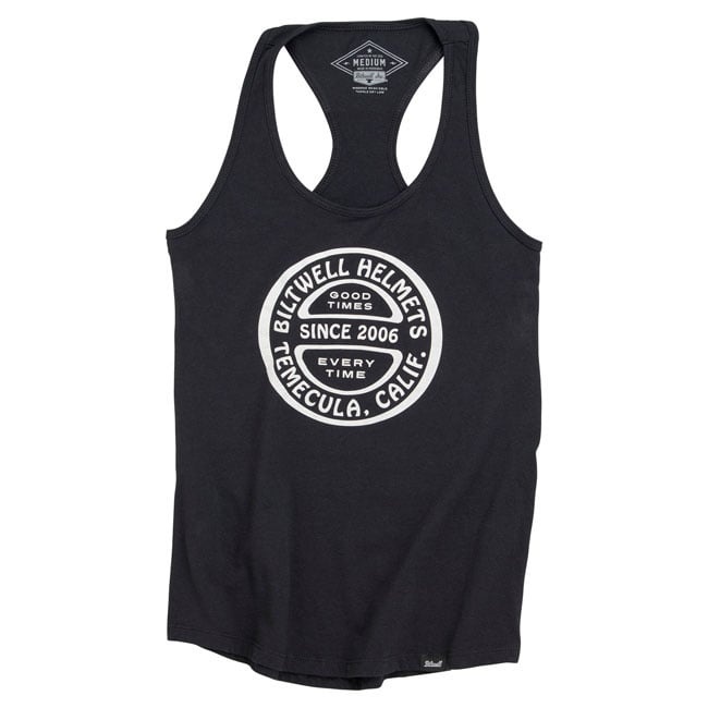 Biltwell surf-inspired since 2006 artwork looks right at home on this athletic, racer back ladies tank top. It’s lightweight construction is as comfy as it is good looking. Fabric is pre-laundered for reduced shrinkage and a lightly screen-printed label.,Size M