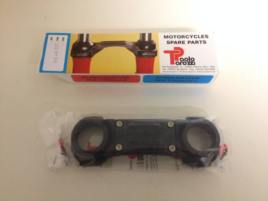 Le stabilisateur de fourche de la marque Tarozzi est un très bon investissement pour votre moto. Il renforce votre fourche et améliore votre confort sur la route. Tous nos stabilisateurs de fourche Tarozzi sont fabriqués en aluminium et possèdent une finition noire mate pour garantir une apparence magnifique et une longue durée de vie. Les instructions de montages sont multilingues et livrées avec chaque stabilisateur de fourche.