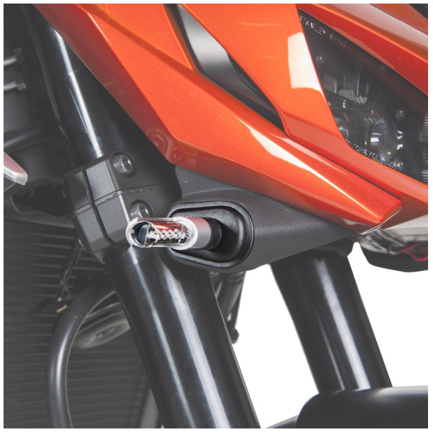 - Les trous laissés par les clignotants d'origine sont recouverts par le Special Bracket Indicator, qui sont des adaptateurs spécialisés pour chaque marque de moto. proposés en kits.