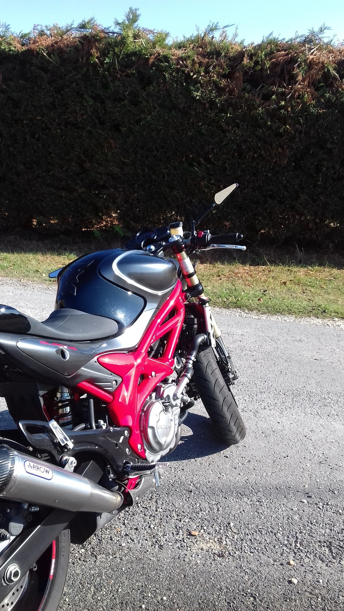 Jeune femme vend superbe Suzuki Gladius 650 en café racer suite à l'attente d'un heureux évènement.