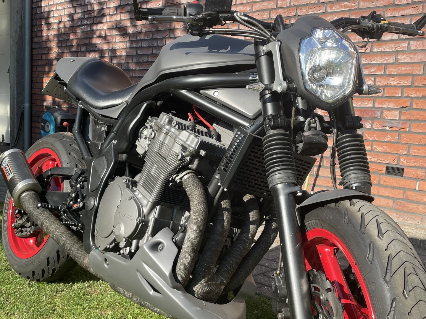 Deze Suzuki GSX-r600 Bandit Cafe Racer est un coureur de café récemment utilisé par un coureur de café professionnel surchargé, le moteur est entièrement contrôlé et entièrement optimisé pour toutes les commandes et les revêtements. Moteur heeft, door omstandigheden, na revisie nog geen 1000km gereden.