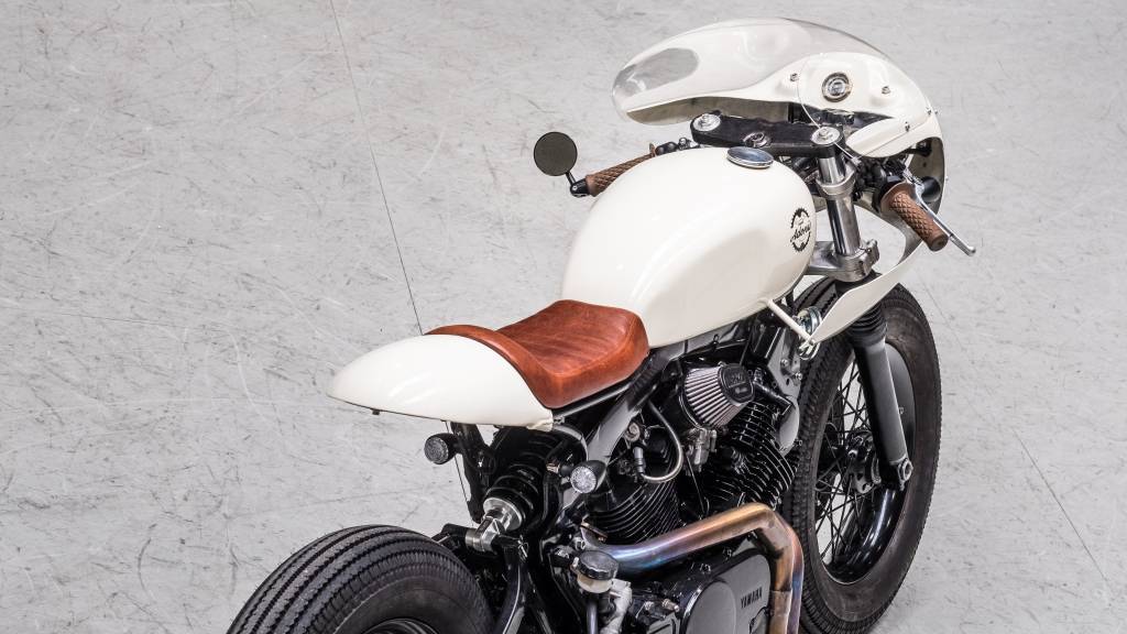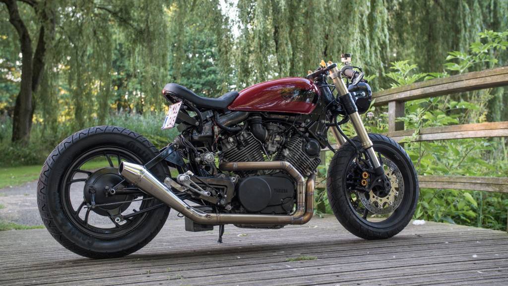 Cet échappement est fait pour la série Yamaha XV. Nous avons l'échappement boulonné sur le Moto Adonis TR1 Classic Cafe Racer. Une belle combinaison. Ce vélo a eu beaucoup de réponses positives lors de plusieurs émissions.