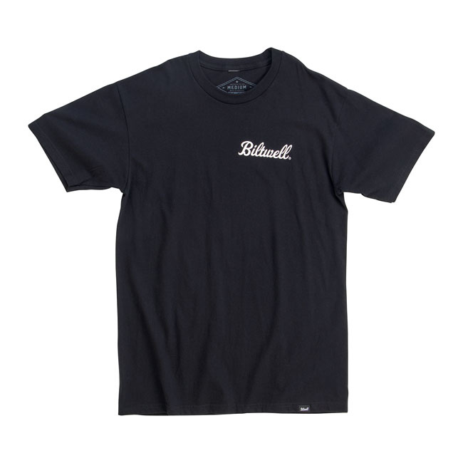 Il s'agit d'un t-shirt Biltwell 100 % coton pré-rétréci de 6 oz avec des encres à base d'eau sérigraphiées à la main, des étiquettes à clip tissées et une étiquette sérigraphiée à la place de l'étiquette de col ennuyeuse. Ceci est considéré comme le T-shirt idéal; il a une sensation de beurre et est suffisamment épais pour être durable sans être une chemise de vieil homme baggy. C'est une vraie coupe régulière plutôt qu'une coupe slim super fine. La version Biltwell d'une mise en page classique de style enseigne a été imprimée aux États-Unis.