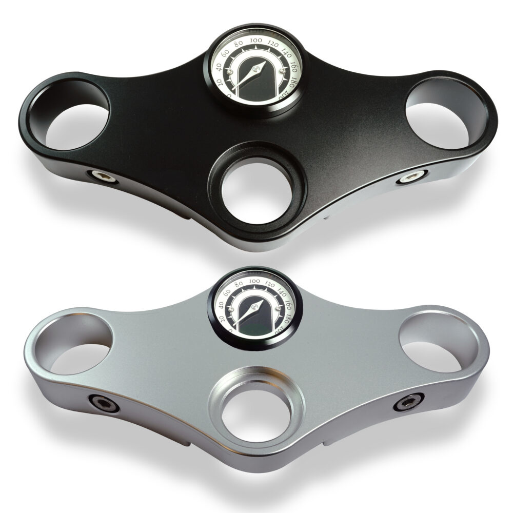 BMW Triple Tree Clamp avec speedo Motogadget intégré et mécanisme de montage de fourche caché. Convient aux modèles BMW K100 et K75 avec fourches de 41,3 mm.