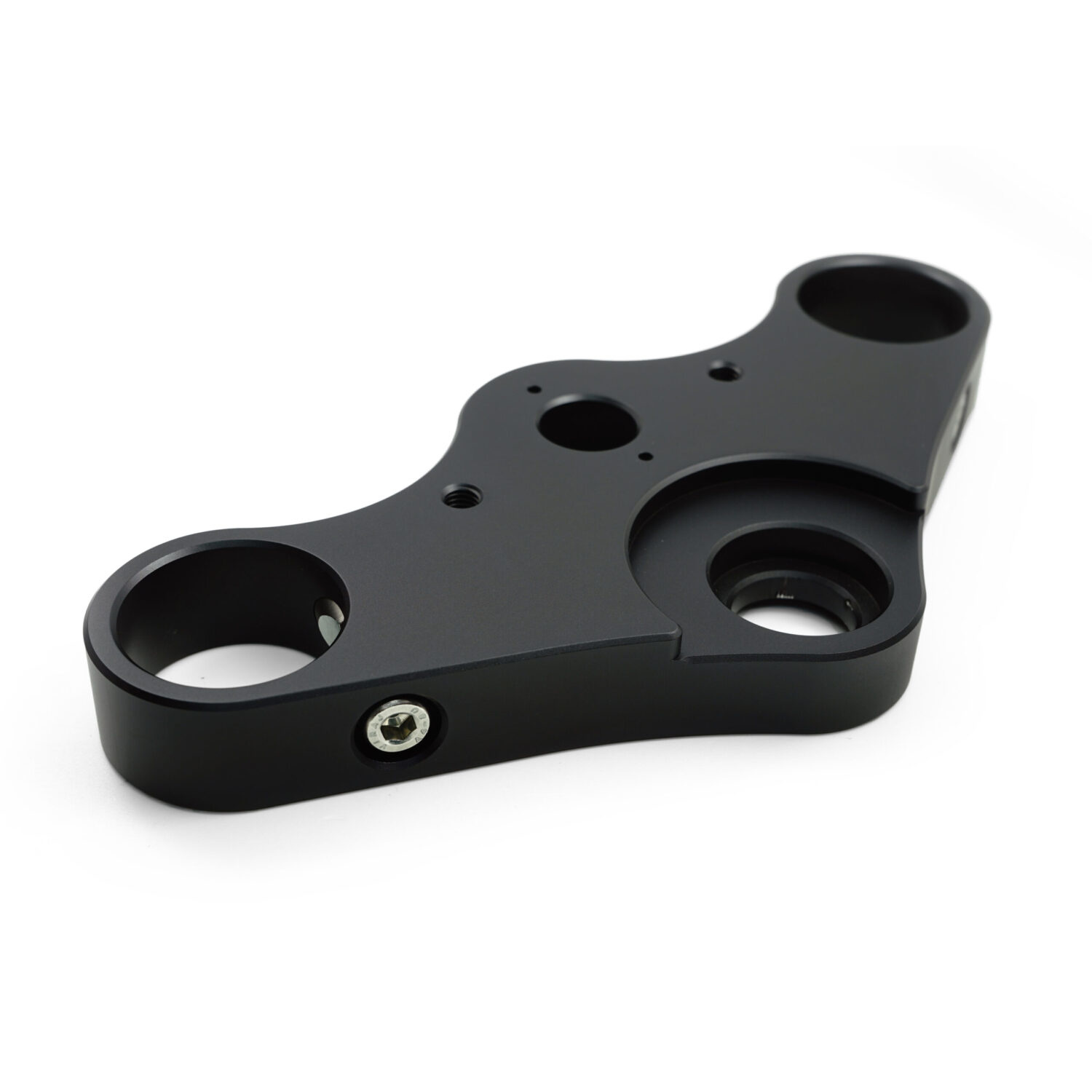 Cette pince à triple arbre de haute qualité est usinée CNC à partir d'une seule pièce d'aluminium de qualité aéronautique. Après usinage, la pince à triple arbre subit une série d'étapes de traitement de surface, y compris l'anodisation. Le résultat est une finition satinée lisse qui est à la fois résistante aux rayures et aux intempéries. Parfait pour une construction de moto café racer ou toute autre construction personnalisée, où vous souhaitez utiliser des clips.