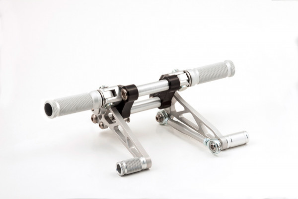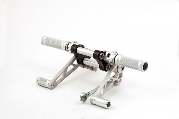 La conception de ces commandes reculées s'inspire de la construction de ponts. En fabriquant chacune des pièces de ce kit avec cela en tête, on obtient des commandes reculées à la fois robustes et légères, tout en étant particulièrement magnifiques. Les repose-pieds et les leviers sont fabriqués à partir d'aluminium d'excellente qualité. Afin d'éviter le jeu de leviers et des roulements, nous utilisons des brosses en PTFE durables. Ces kits de commandes reculées vous offrent donc la possibilité de changer de vitesse avec précision. Même lorsque vous prenez des virages serrés, les repose-pieds repliables vous offrent une sécurité optimale en touchant le sol (en option).