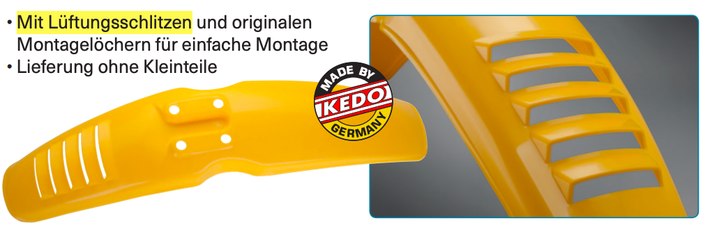 Ce garde-boue Kedo est une réplique des garde-boue Yamaha TT/XT500 de 1978 à 1979 et est disponible en 4 coloris vintage, comme l'original.