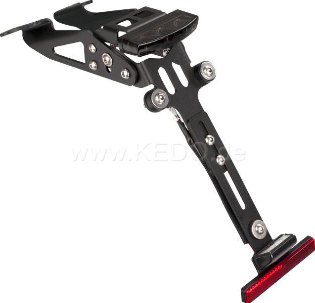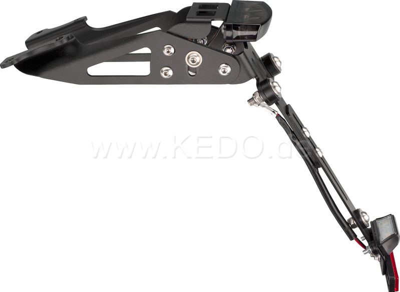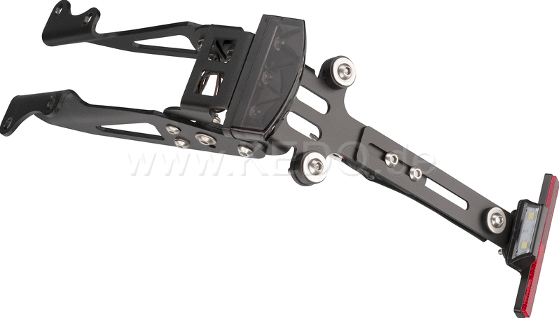 Wrenchmonkees "Monkeebeast" Support de plaque d'immatriculation avec feu arrière à LED et angle réglable. Aluminium et acier inoxydable. Revêtement par poudre noir.