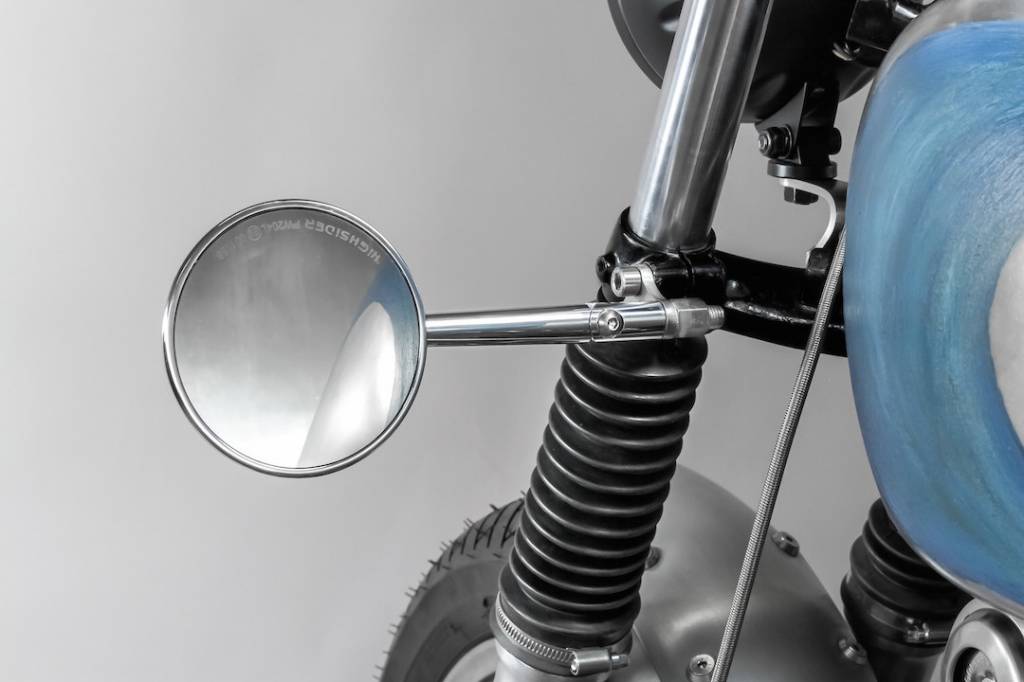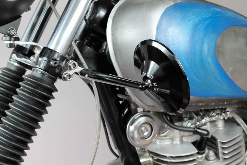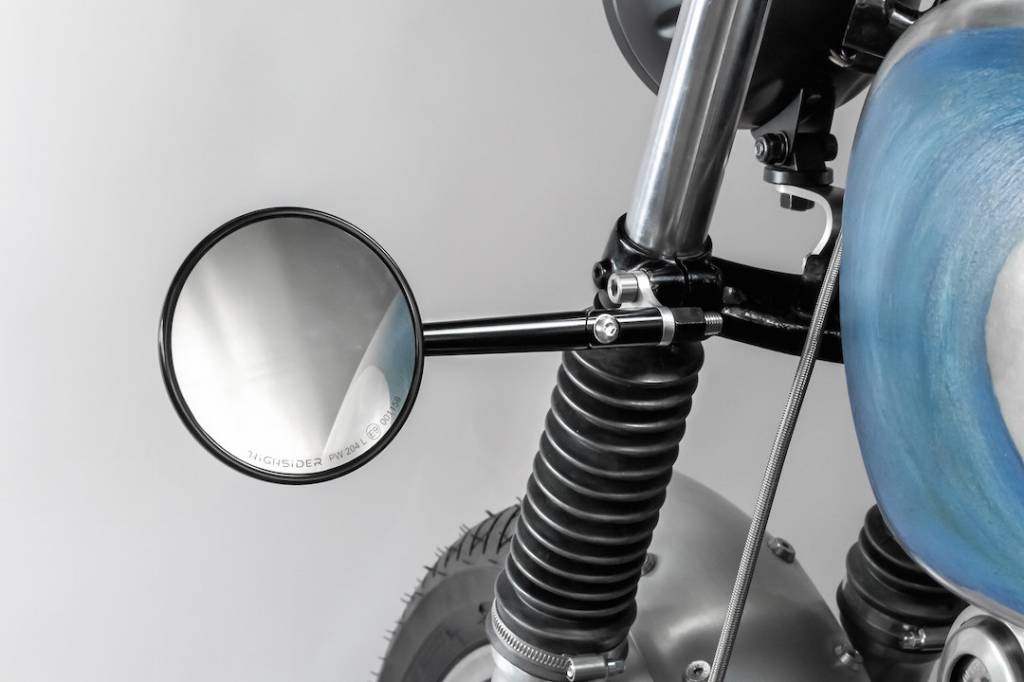 Ce support pour rétroviseur se monte sur la fourche de votre moto personnalisée. Il donne à l'avant de votre moto une apparence épurée et professionnelle. De plus, vous avez une meilleure visibilité, car les vibrations au niveau de la fourche sont plus faibles.