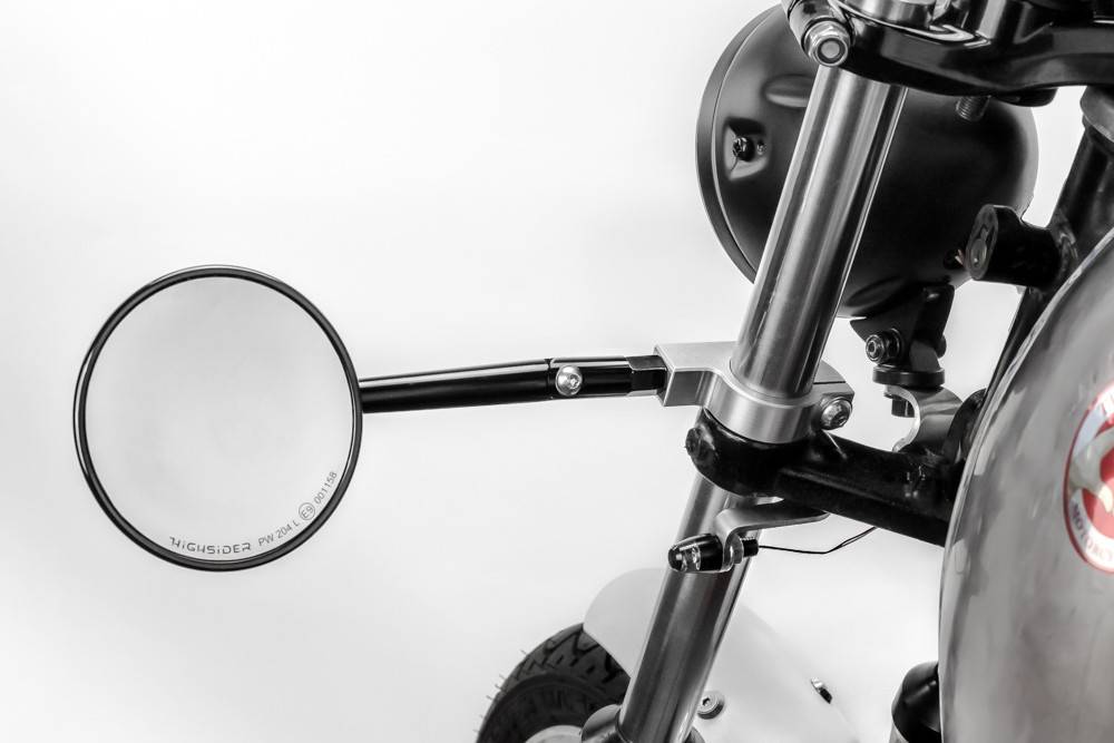 Ce support est parfaitement adapté au rétroviseur "Montana" du fabricant allemand Highsider. Ce rétroviseur est fabriqué en aluminium d'excellente qualité et est très résistant aux vibrations. Grâce à son réglage en trois points, la position peut être facilement adaptée à vos besoins. Bien évidemment, ce rétroviseur est homologué pour l'Union européenne.